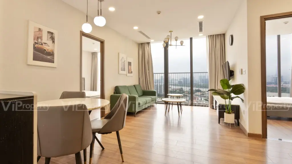 The spacious master bedroom offers a view of Landmark 81 in District 1 and beautiful fireworks.